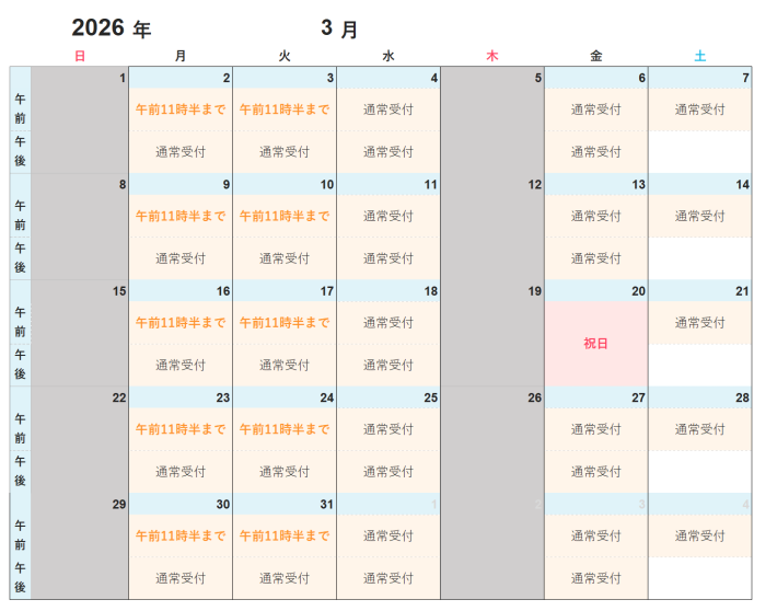 ※ 初診の患者様は、受付終了15分前までにご来院お願いいたします。