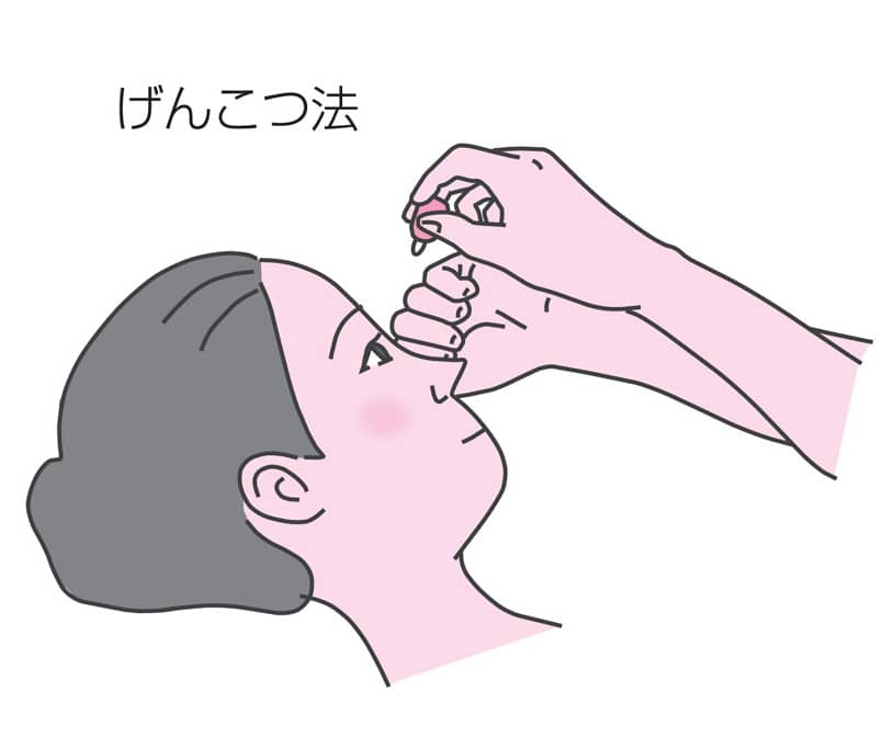 げんこつに点眼容器を持つ手をのせ、1滴を確実に点眼します。