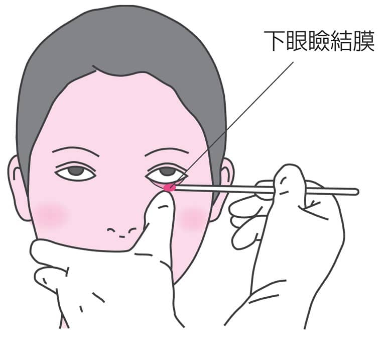 下瞼を軽く下にひき、瞼のうらの赤い粘膜部分に、軟膏を落としてください。