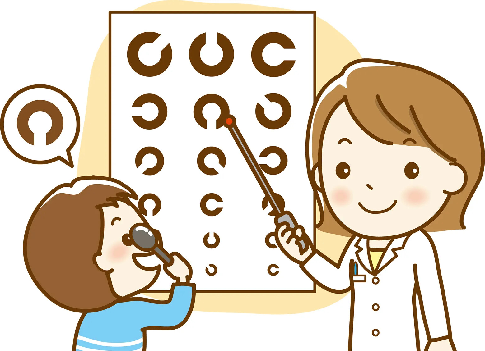 小児期は、視力が大きく発達する、目の成長にとって最も重要な時期です。視力が完成し、大人と同程度に見えるようになるのは10歳頃と言われています。視力が発達途上の時期に、眼にトラブルが生じると、視力がうまく発達せず、成人になっても、視力が出なくなる場合があり、注意が必要です。